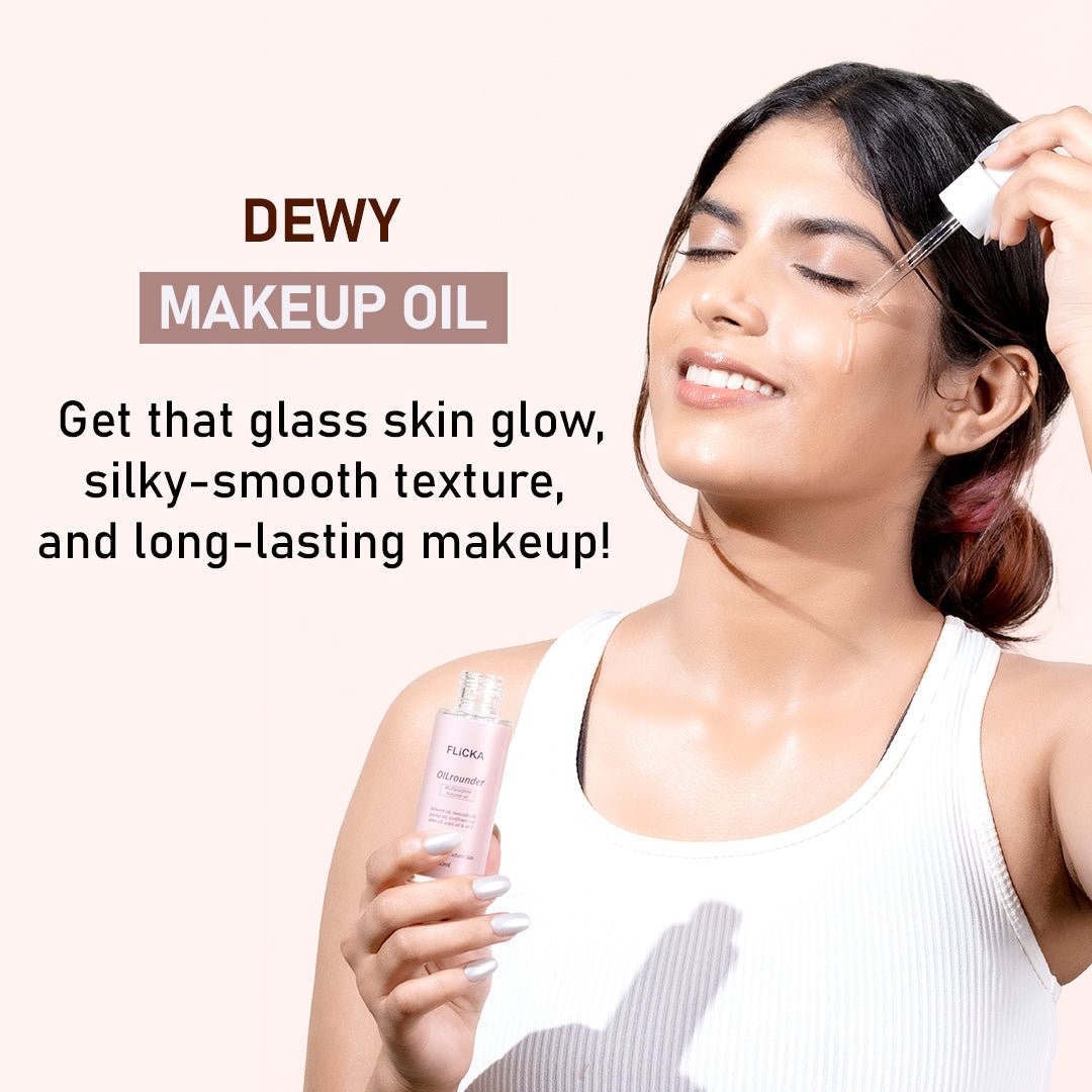 Flicka's Oil Rounder Multipurpose Oil is like a magic potion for your skin. It's a special blend of natural ingredients that helps make your skin soft, hydrated, and glowing. You can use it in many ways - as a moisturizer, overnight treatment, or even to fix dry spots!
